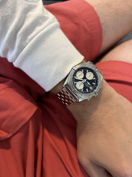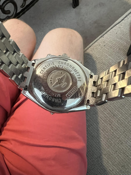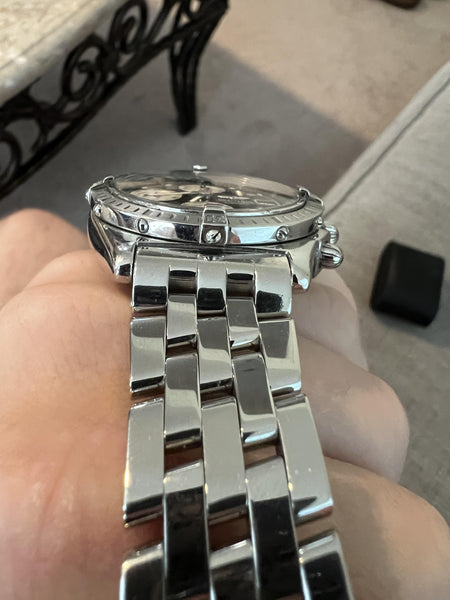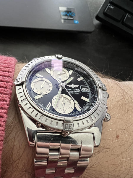 The Breitling Chronomat A13352 is a quintessential model from the Chronomat collection, renowned for its robust construction, versatile design, and reliable chronograph functionality. This timepiece blends sporty appeal with a touch of sophistication, making it a favorite among watch enthusiasts.