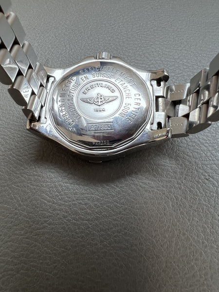 For sale is the Breitling Colt Automatic, reference A17380, a versatile and durable timepiece designed for everyday wear and adventure. With its robust construction and classic design, this watch is an excellent choice for enthusiasts seeking reliability and style.