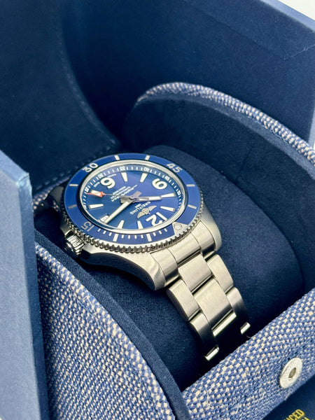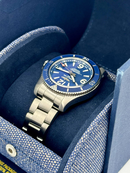 This Breitling Superocean Automatic 42 is in excellent condition, with minimal signs of wear. It has been professionally polished and tested for accuracy, making it ready for its next dive or daily adventure.