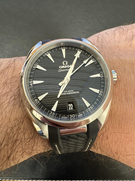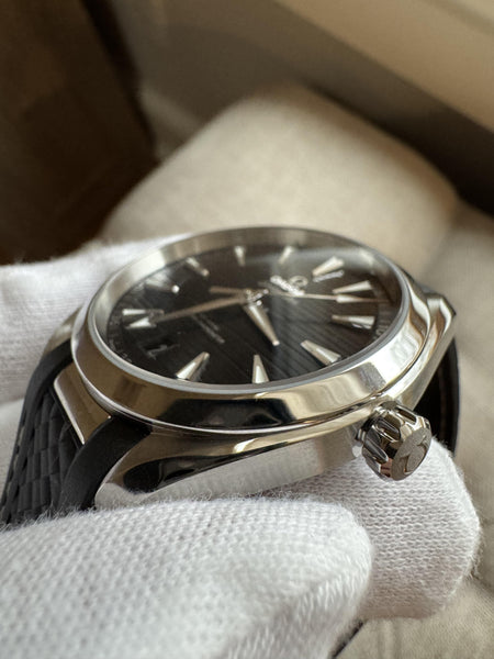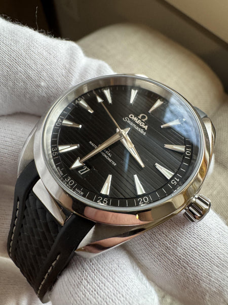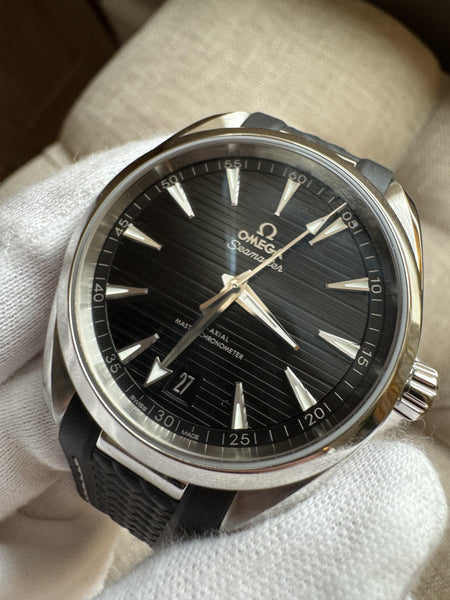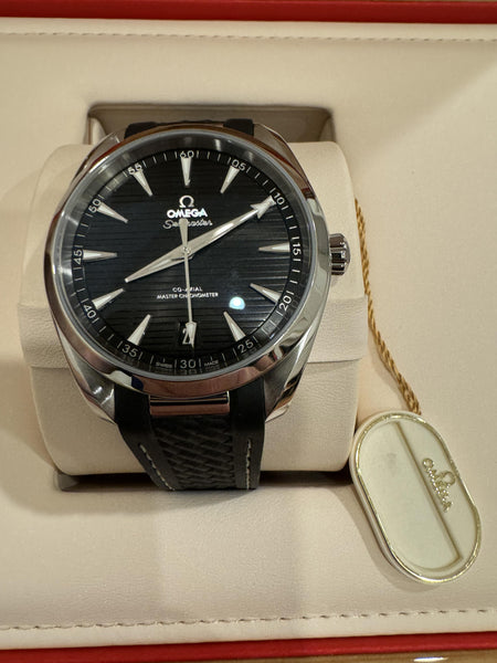 The Omega Seamaster Aqua Terra 150M seamlessly blends sporty elegance with cutting-edge technology, making it a versatile choice for both casual and formal settings. This reference, with its bold black dial and modern design, stands out as a quintessential timepiece in Omega’s prestigious lineup.