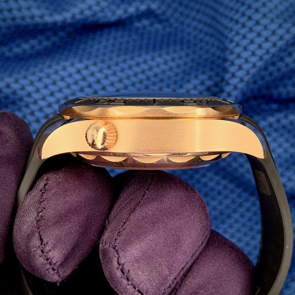 For sale is a truly exceptional example of the Omega Seamaster Chronograph in luxurious Sedna Gold, paired with a striking black ceramic bezel. This timepiece embodies the best of Omega’s design and engineering, elevated with the warmth and brilliance of gold. Both functional and sophisticated, this watch offers a perfect blend of durability, elegance, and excitement on the wrist.