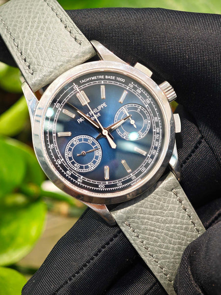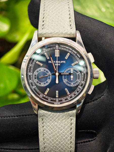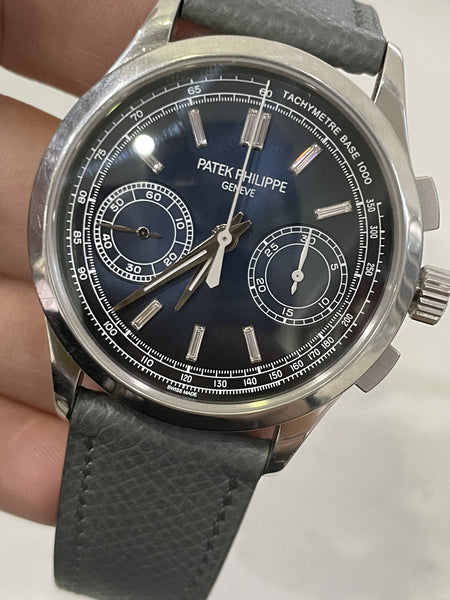 This Patek Philippe 5170P is in impeccable condition, with no visible signs of wear. The platinum case, blue sunburst dial, and baguette-cut diamond markers are flawless, offering a perfect balance of elegance and functionality. Fully serviced and tested, this watch is ready to become a highlight in any collection.