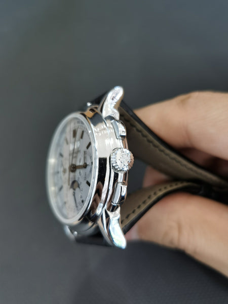 This Patek Philippe 5970G is in outstanding condition, with the white gold case and opaline dial meticulously maintained. The movement is fully serviced and performing at peak precision. A rare opportunity to own one of Patek Philippe’s most celebrated timepieces.