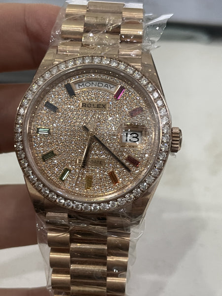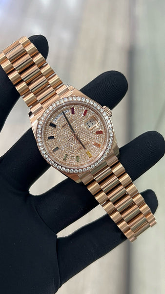 Rolex Day-Date 36 128345RBR – Everose Gold with Diamond-Set Bezel