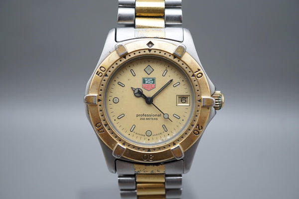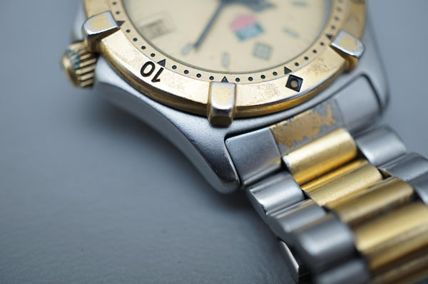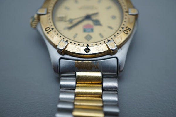 This TAG Heuer 2000 Series 964.013 is in great condition for its age, showing minimal signs of wear consistent with careful use. The bezel, dial, and bracelet have been well-maintained, and the quartz movement is running accurately. A robust and stylish timepiece ready for its next owner.
