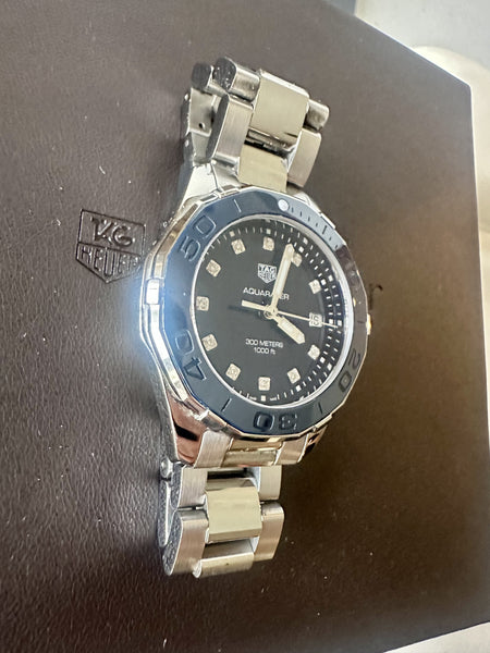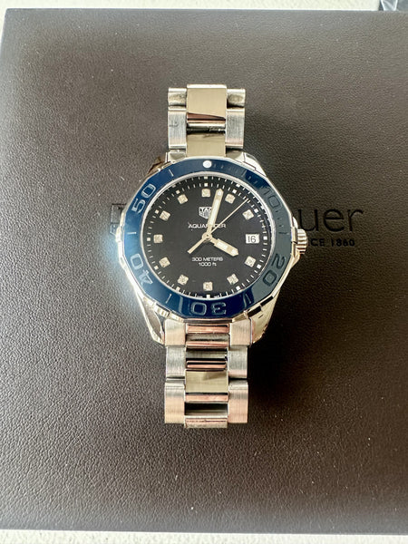 This TAG Heuer Aquaracer 300M Quartz 35mm is in excellent condition, with minimal signs of wear. The sapphire crystal and ceramic bezel are flawless, and the strap is in like-new condition. A stunning and reliable timepiece ready for its next owner.